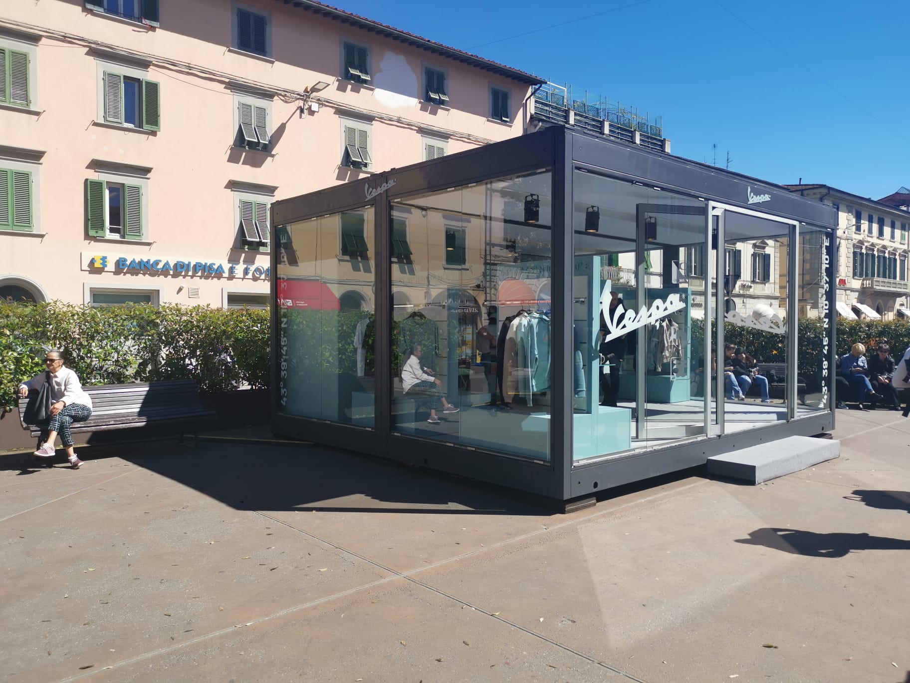 Temporary Store Kunde Vespa Location Pontedera Produkte VIEWBOX GLASS DOUBLE DOOR GREY, VIEWBOX GLASSWALL SEAMLESS 113, VIEWBOX STRUCTURE GREY Download PRODUKTE